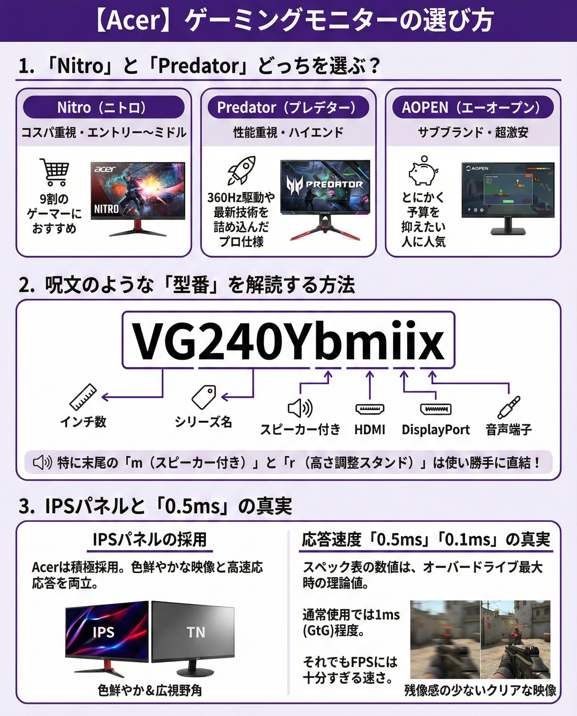 【2026年最新】Acerゲーミングモニターの型番の読み方|Nitro・Predatorの選び方とおすすめ14選