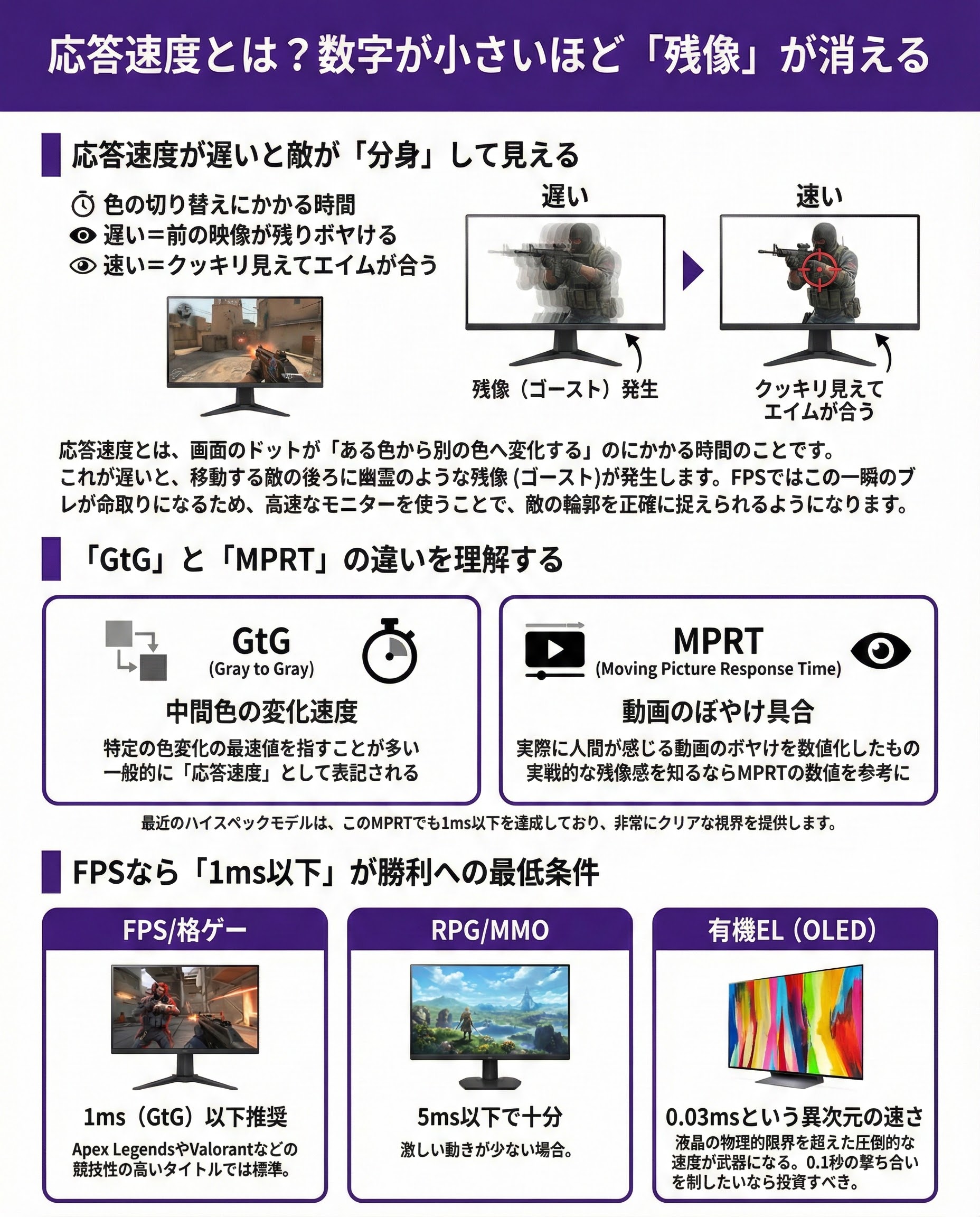- FPSゲーマーは「GtG 1ms以下」を目安に