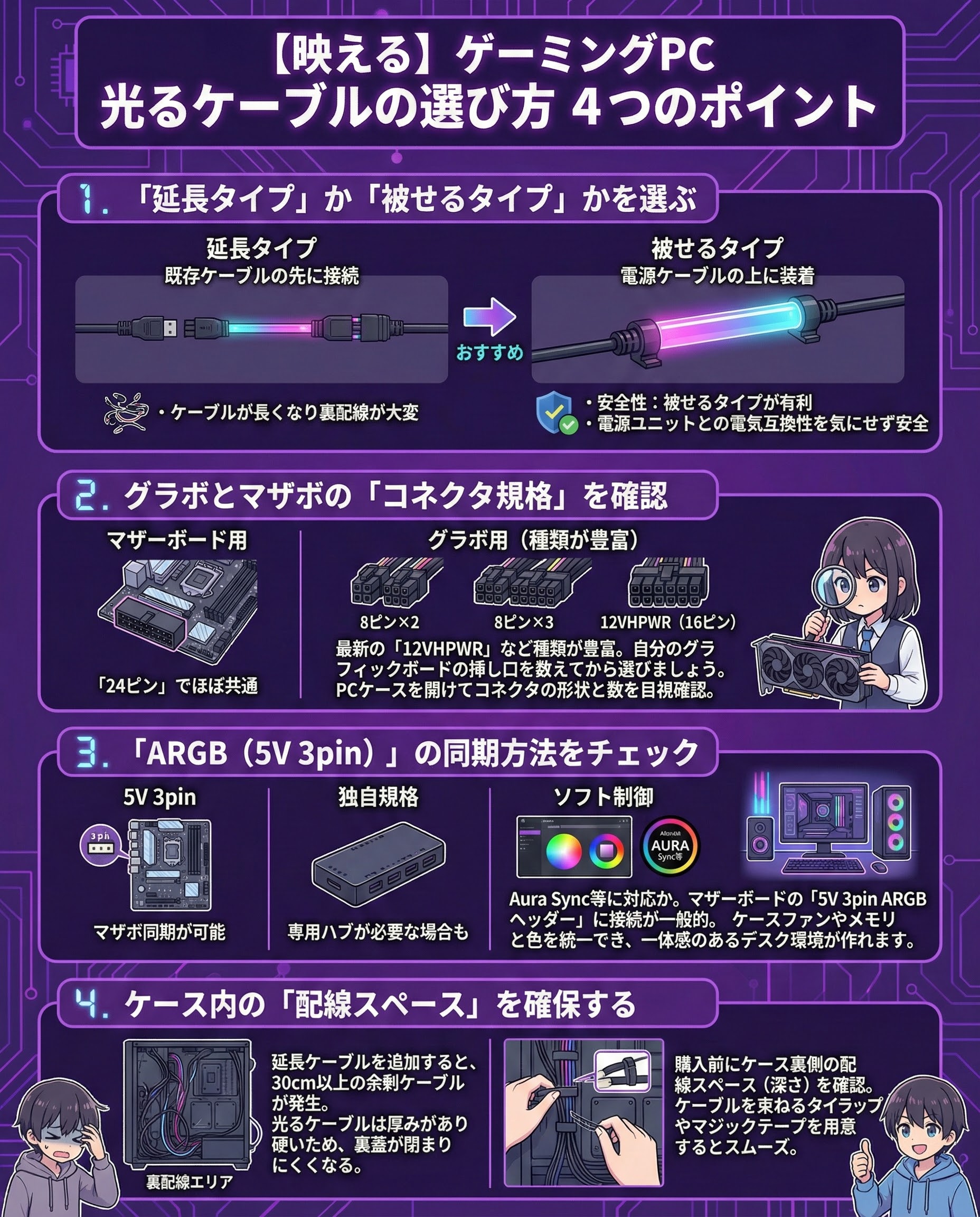 【2026最新版】ゲーミングPCの光るケーブルおすすめ14選|選び方と規格・配線の注意点を徹底解説