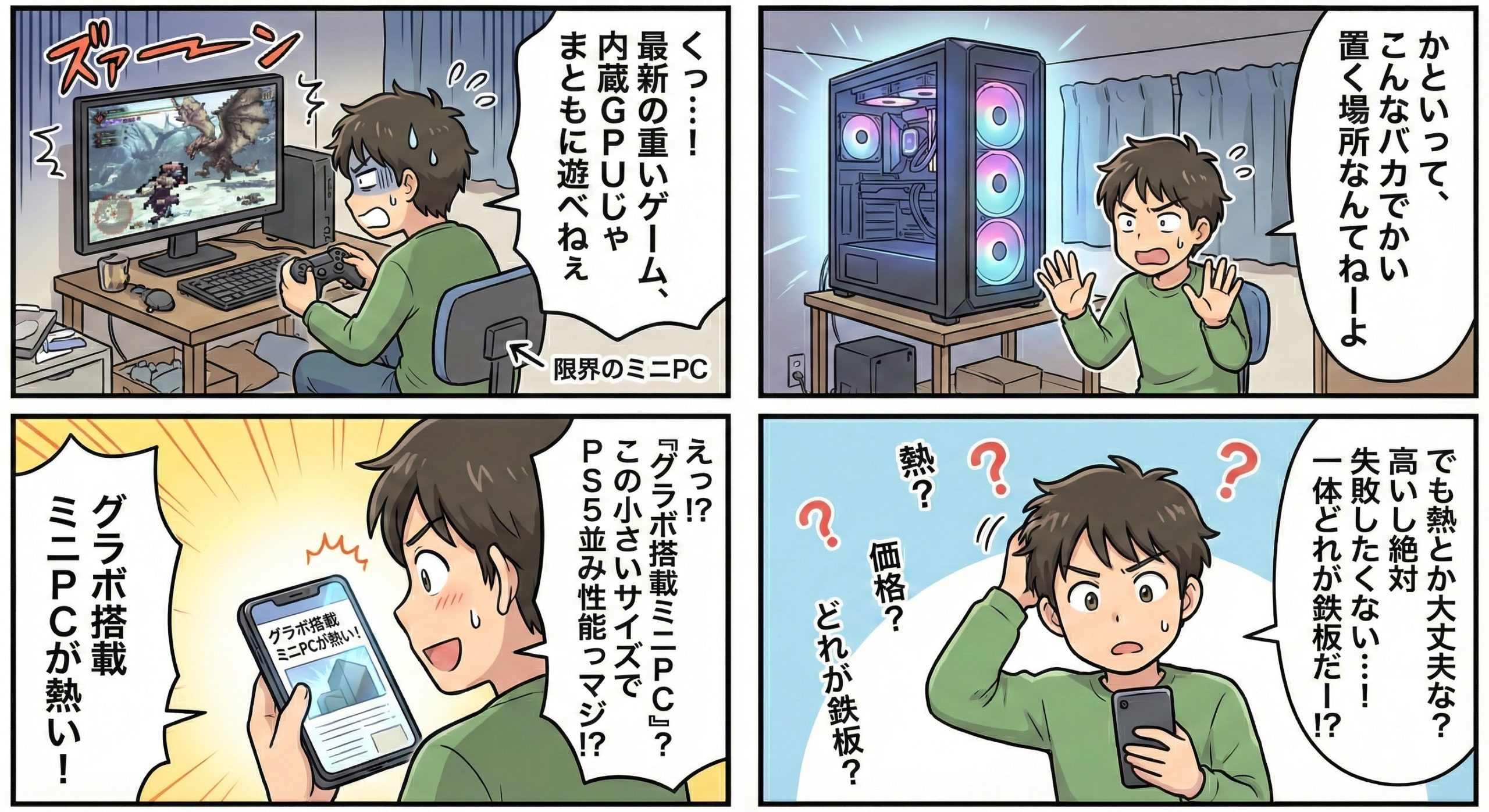 グラボ搭載ミニPCは、もはや「妥協の産物」ではありません。デスクトップPCの性能を、片手で持てるサイズに凝縮したロマンあふれるマシンです。場所を取らずに最高のゲーム環境を手に入れたいなら、この選択肢は間違いなく「アリ」です。