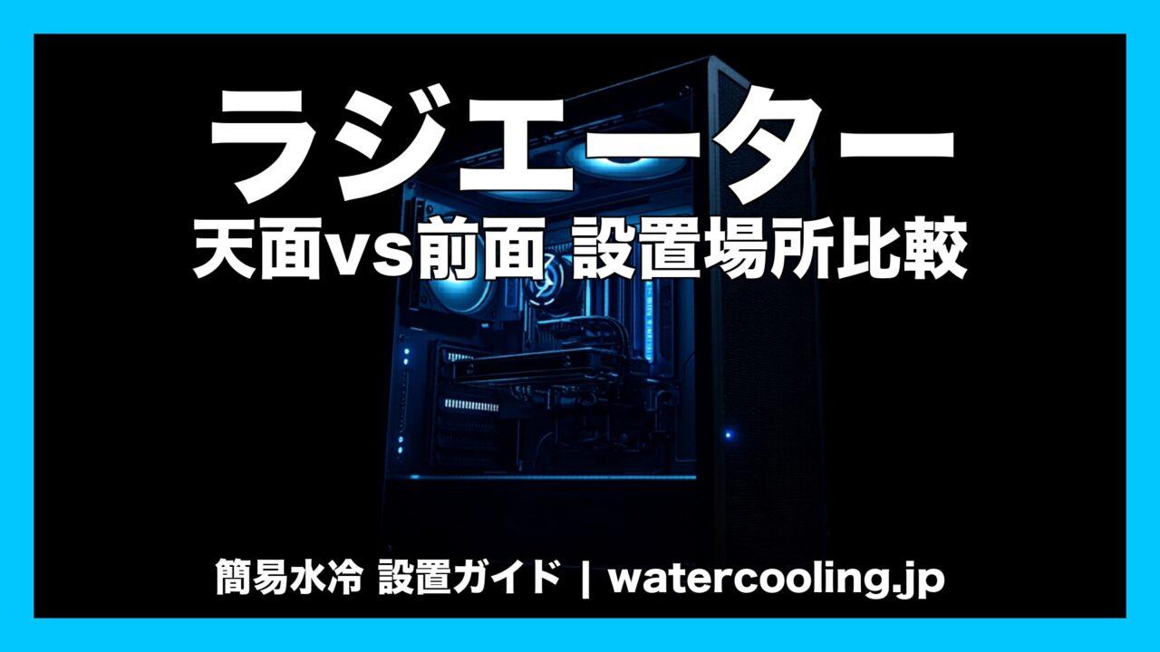 前面ラジエーターは吸気方向になるため、温まった空気がGPUに直撃するリスクがある。背面1基+天面2基の排気3基以上が最低ラインだ。排気が不十分だとケース全体が蒸し風呂状態になり、GPUが熱暴走する。ケースファンの向きと配置も合わせて見直すと効果的。