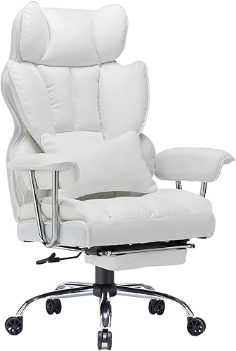 白いPUレザーの大敵・黄変に対して防汚コーティングを施したモデル。幅54cmのコンパクト設計で、背面に通気スリットがあるからPUなのに蒸れにくいのが気に入ってる点。8,000円前後で耐荷重120kgと作りも頑丈で、「白いチェアを安く試したいけど黄変は嫌」という人にぴったりの1台。